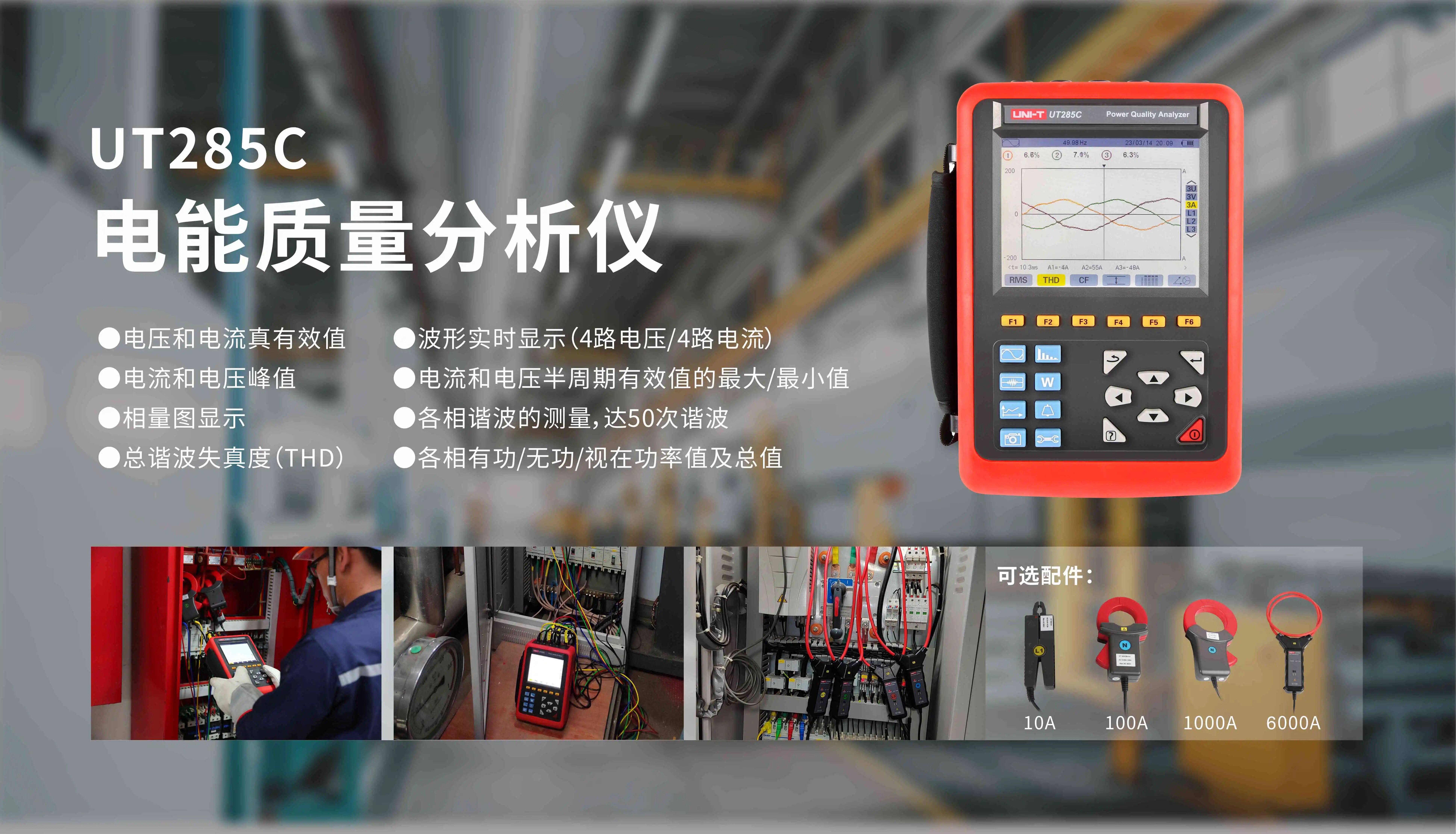 UT285C配備大尺寸彩色液晶屏,集成電壓、電流、功率、電能、功率因數(shù)、諧波等多項(xiàng)參數(shù)測(cè)量功能,支持實(shí)時(shí)波形顯示與數(shù)據(jù)存儲(chǔ)。通過(guò)搭配不同規(guī)格電流鉗,可進(jìn)一步拓展其應(yīng)用范圍,為用戶提供更為全面、專(zhuān)業(yè)的電能質(zhì)量分析解決方案。主要適用于電力、石化、冶金、鐵路、工礦企業(yè)、科研院校、計(jì)量部門(mén)等多個(gè)領(lǐng)域。