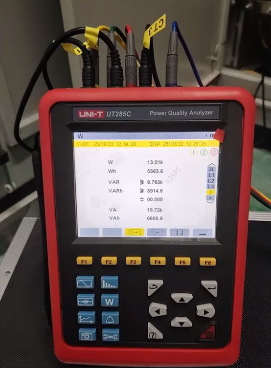 針對(duì)客戶實(shí)際需求,優(yōu)利德攜UT285C電能質(zhì)量分析儀進(jìn)行現(xiàn)場(chǎng)測(cè)試。該產(chǎn)品支持三相四線制接線模式,具備高精度測(cè)量、實(shí)時(shí)波形顯示、多參數(shù)同步記錄及數(shù)據(jù)存儲(chǔ)等功能,特別適用于工業(yè)現(xiàn)場(chǎng)的電能質(zhì)量評(píng)估。現(xiàn)場(chǎng)測(cè)試過(guò)程如下:
