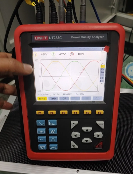 現(xiàn)場(chǎng)技術(shù)人員表示,UT285C操作簡(jiǎn)便、響應(yīng)迅速,多參數(shù)同屏顯示功能便于快速判斷電能質(zhì)量狀況,長(zhǎng)時(shí)間數(shù)據(jù)記錄能力也為后續(xù)分析提供了可靠依據(jù)。
