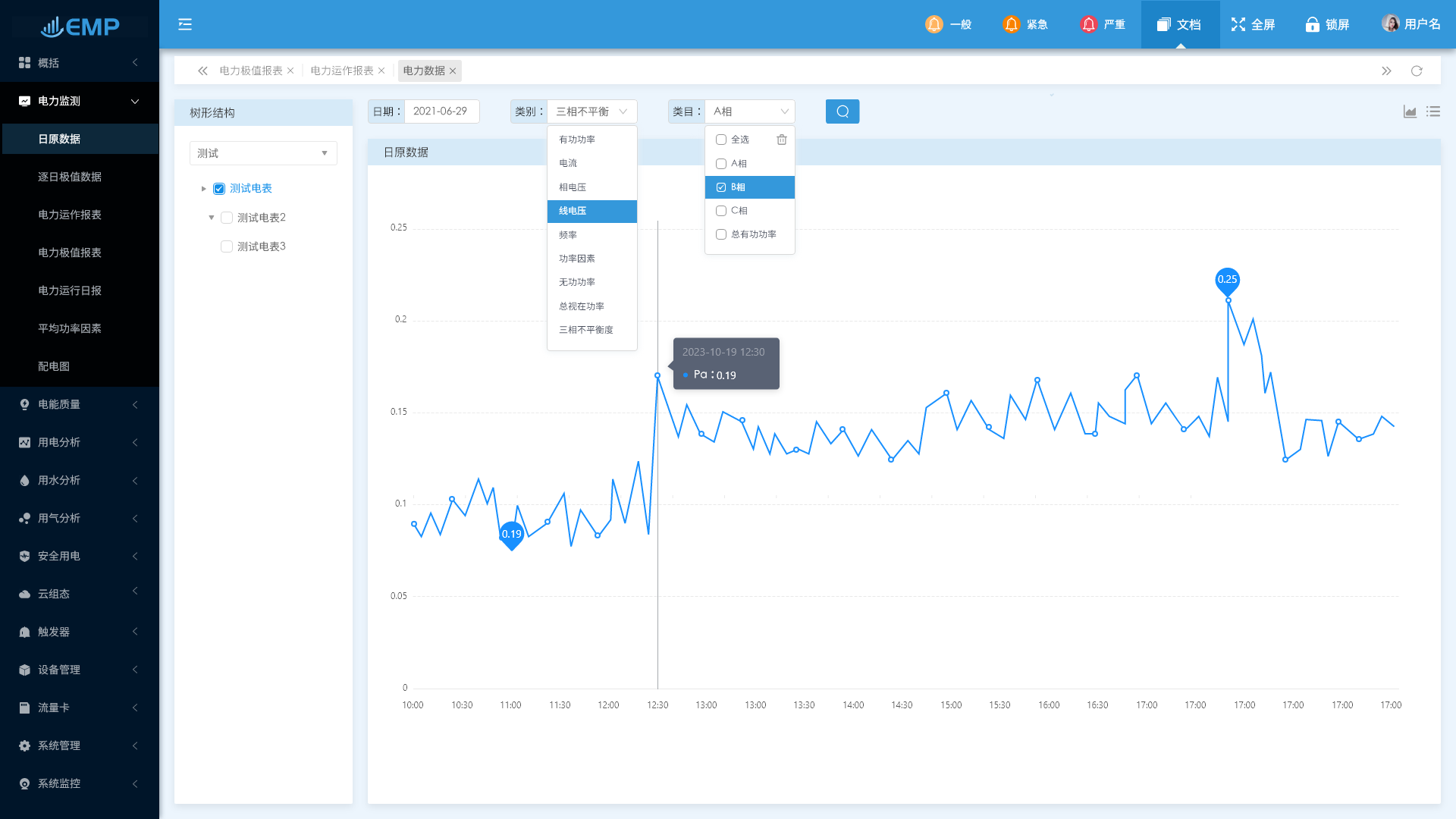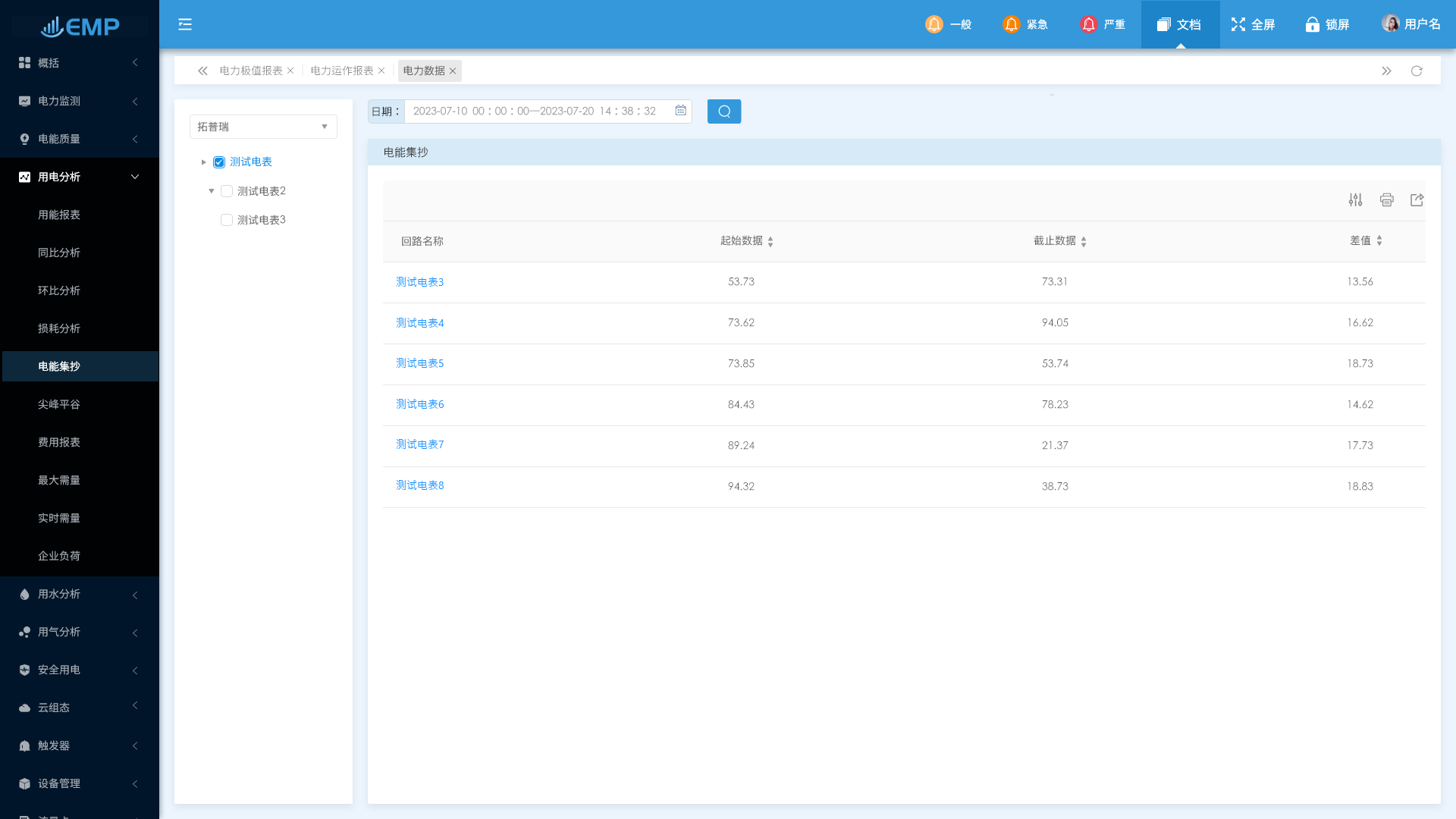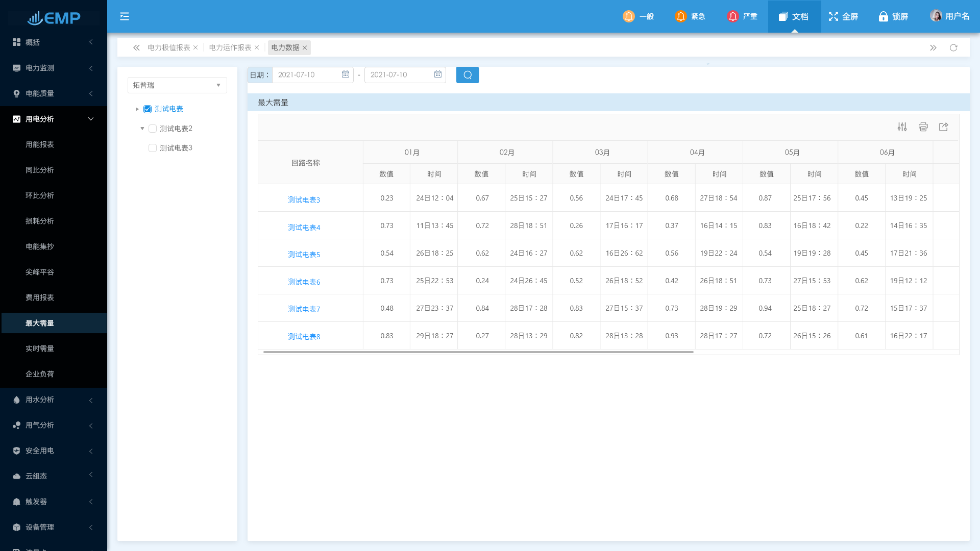 用電分析包含了用能報(bào)表/同比分析/損耗分析/電能集抄/尖峰平谷/最大需量/實(shí)時(shí)需量等功能。