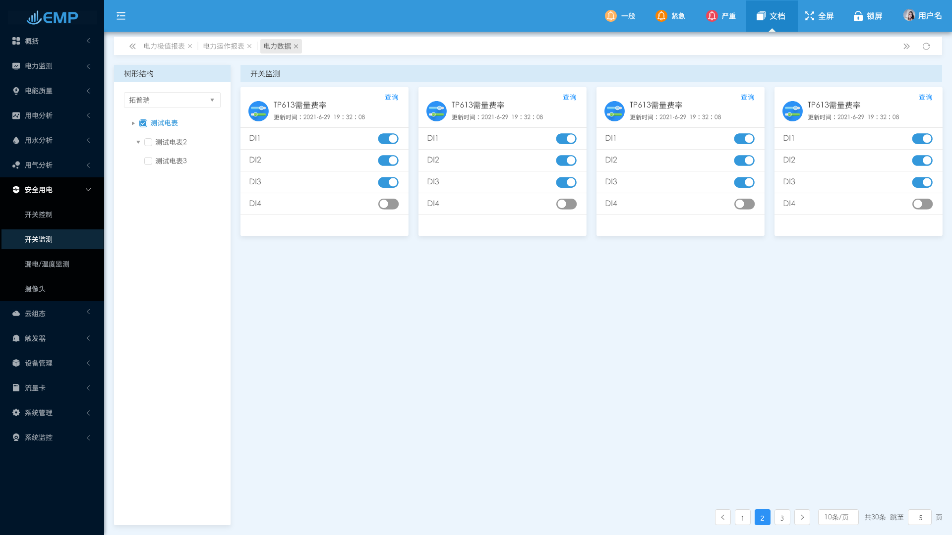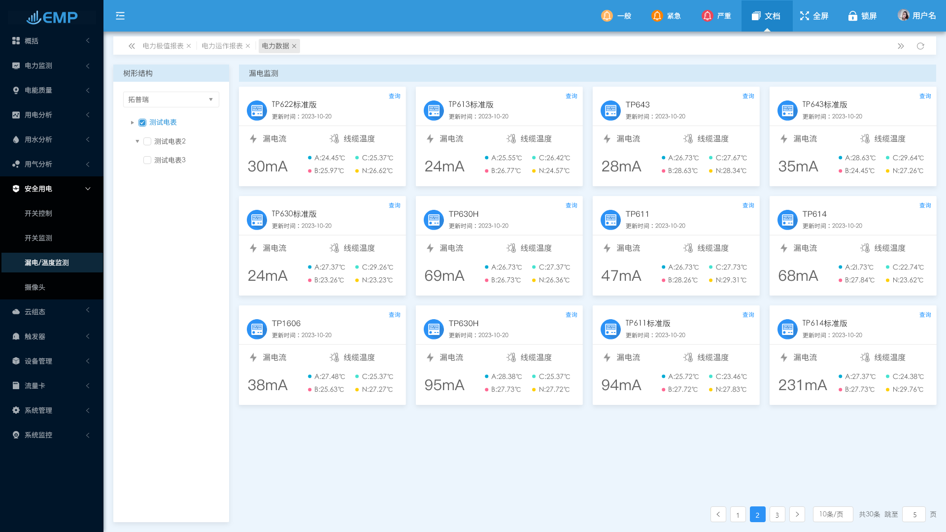 energye能耗管理平臺(tái)中的用電安全包括:開(kāi)關(guān)控制、開(kāi)關(guān)監(jiān)測(cè)、漏電/溫度監(jiān)測(cè)、視頻監(jiān)控等。