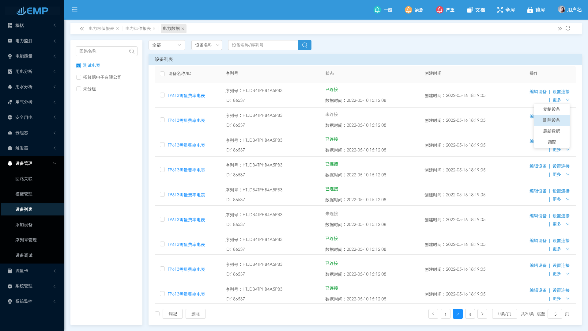 設(shè)備管理中包括:回路關(guān)聯(lián)、模版管理、設(shè)備列表、添加設(shè)備等。