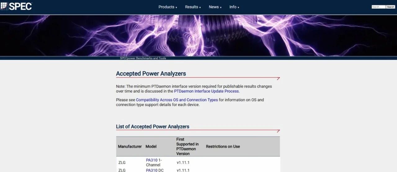 致遠儀器PA310高精度功率計正式通過SPEC組織的官方認可,成為首款進入該列表的國產(chǎn)功率分析儀器,意味著在服務(wù)器能效這一關(guān)鍵測試領(lǐng)域,有了經(jīng)過國際標(biāo)準(zhǔn)驗證的、可靠的國產(chǎn)方案。 圖 3 SPEC官網(wǎng)列出的受支持功率分析儀器